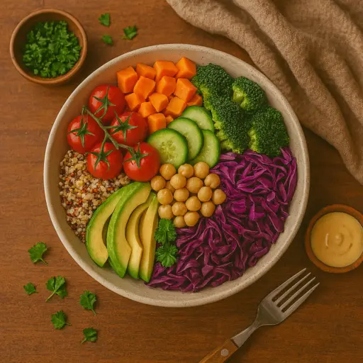 Salada de Grão com Tomate Seco e Manjericão